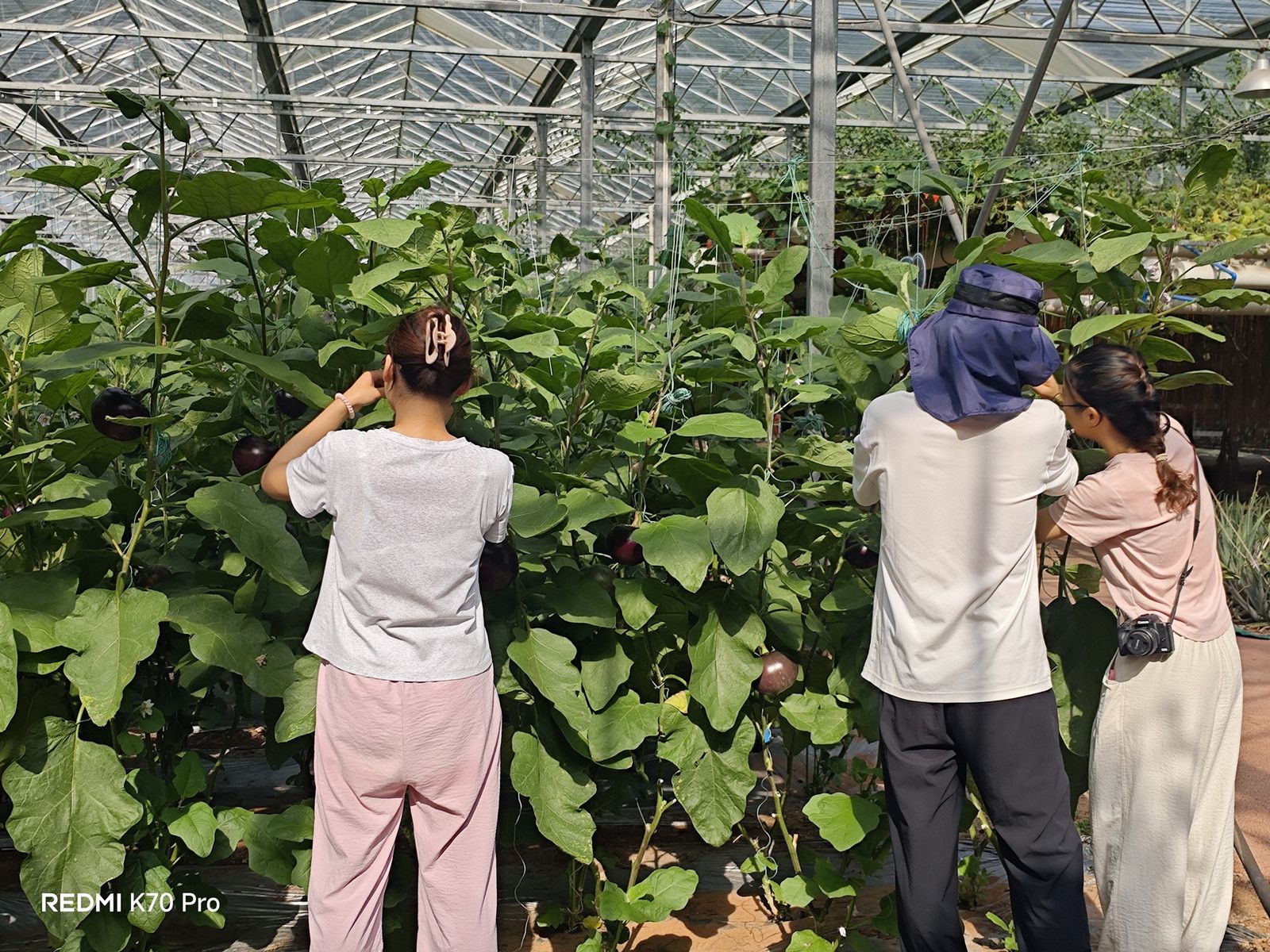 7月17日至20日,实践团再赴潼南开展系列实践活动。在潼南农业科技城及蔬菜博览园,董攀老师系统讲解了杂交育种原理并示范操作。成员们亲身参与杂交实践,详细记录了前期杂交成功的组合情况,选定了航茄103、玉露3号等可在潼南示范试点的品种。同时,成员们也收集了病害样本带回实验室研究。在园区杨师傅的指导下,团队重点研习了太空蔬果种植管理及病虫害绿色防控技术,细致记录关键要点,为后续科普工作积累专业储备。